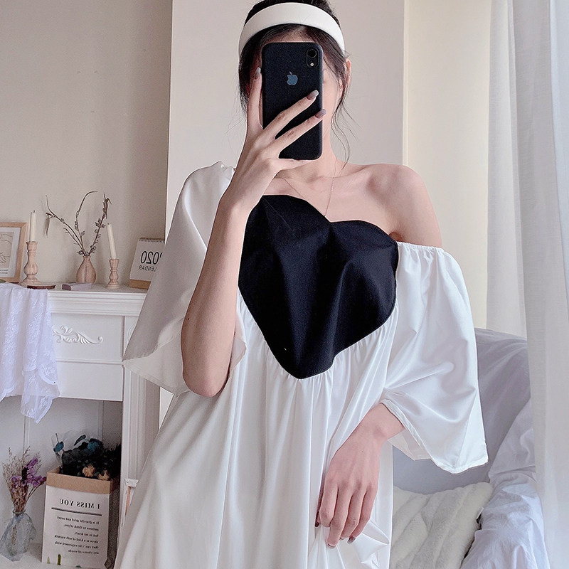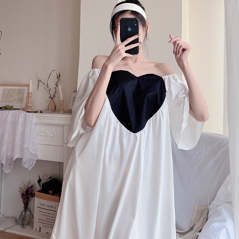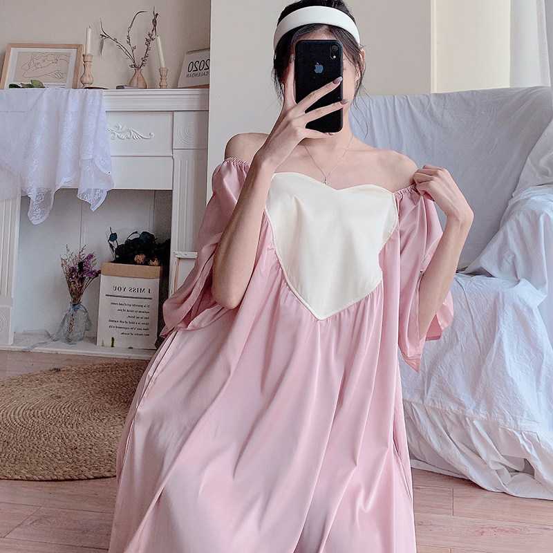 Loving Straight Shoulder White Sleeping Dress With a Shoulder Pink Sleeping Dress