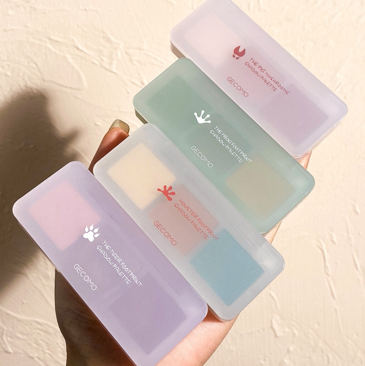 Soft cute small animal claws imprinted matte pearls with fine glitter Three-colour eye shadow disc
