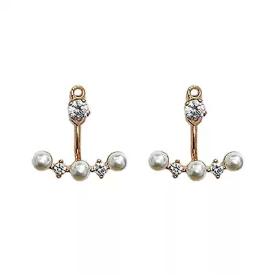 Korean advanced design sense Pearl zircon simple Joker temperament earrings back hanging ear pin earrings female tide