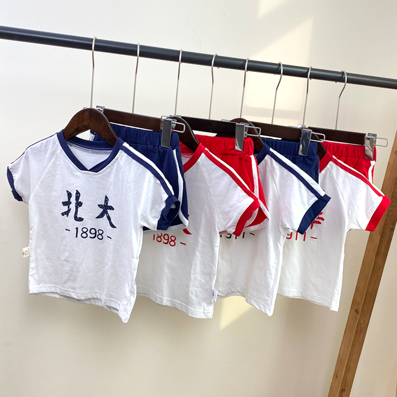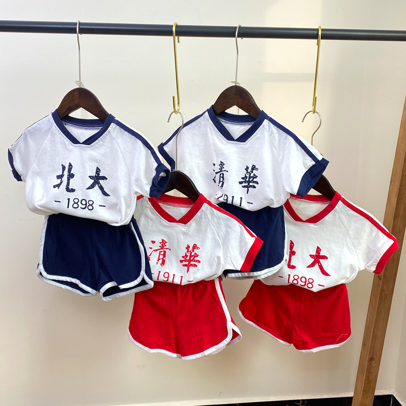 Male and female baby short sleeves suit Peking University Tsinghua Tong clothes children's school uniforms girls'spring cruise summer style boys' summer clothes
