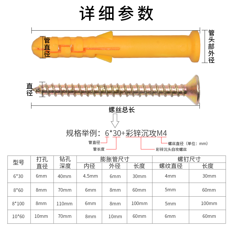 Small yellow fish plastic expansion tube beauty solid tap plug self - tapping screw 6 8 10 12mm swelling screw