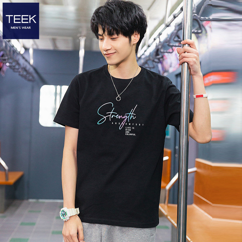 TEEK Summer Men T - shirt Short Sleeves Teen Han Edition in Trend Simple half - sleeved cotton ice skate clothes