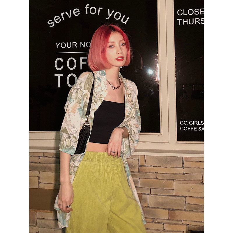 Green floral short-sleeved shirt women's 2021 spring new Korean version loose Hong Kong style retro niche all-match shirt trend