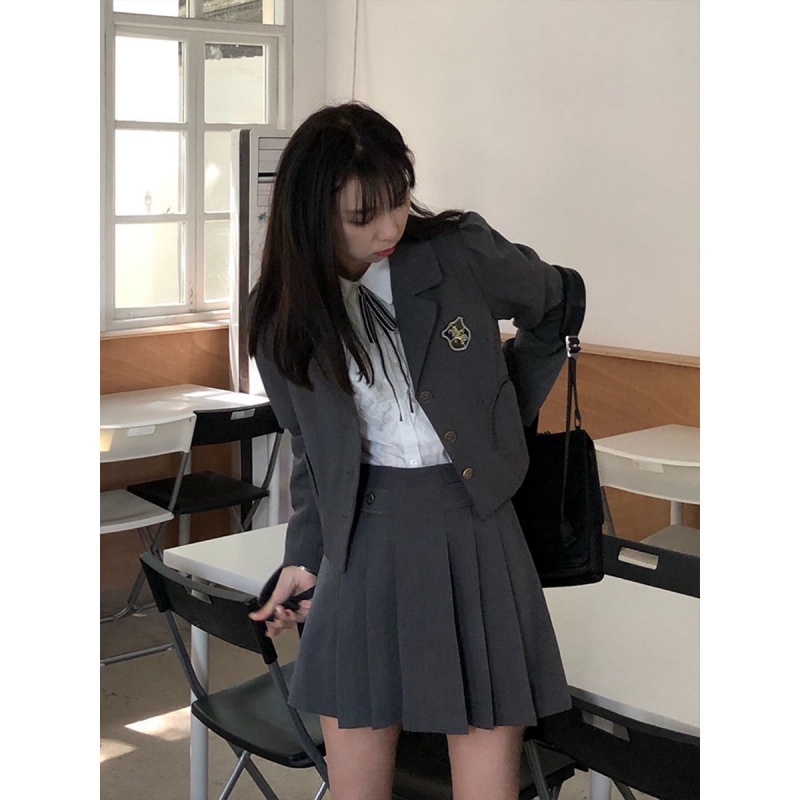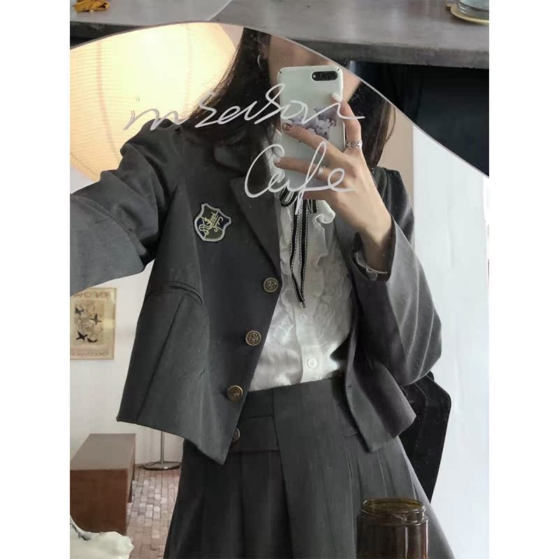 Arc Pocket Classic Retro Suit Woman 2021 New Academy Wind Small Suit Jk Half Body Dress Shirt Three Sets