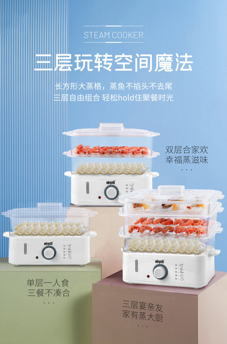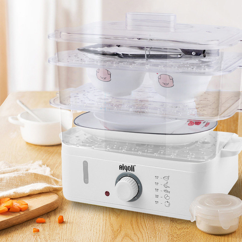 Aiger Pan Breakfast Timing Electric Steamer Multifunction Home Tri-Layer Large Capacity Multilayer Steam Pan Transparent Small