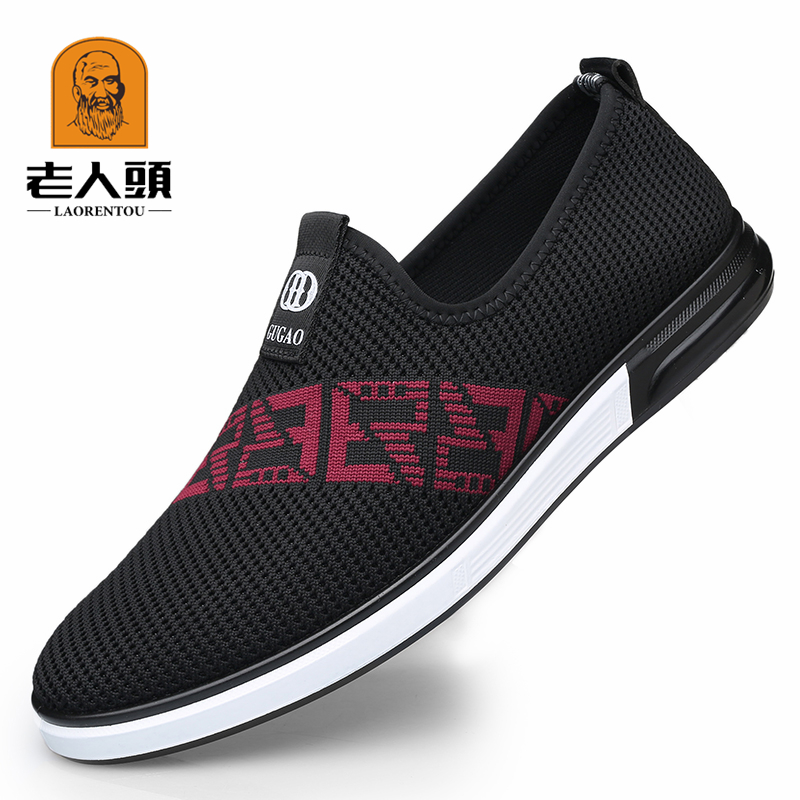 Old man's head men's shoes 2022 spring breathable casual shoes soft-soled running shoes men's mesh shoes light and comfortable flying woven shoes