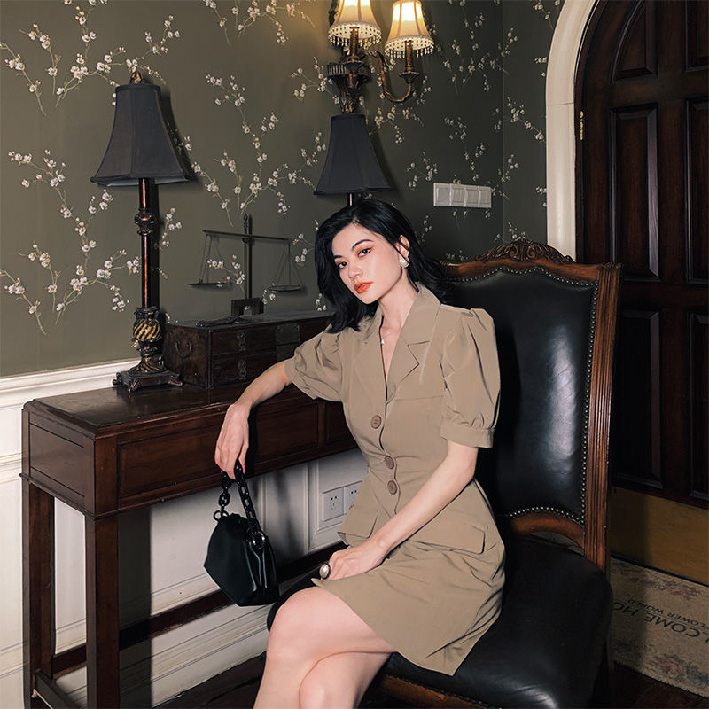 Fa-style retro Herben Wind suit women's 2021 new spring temperament Slim Hollowed-out with short skirts