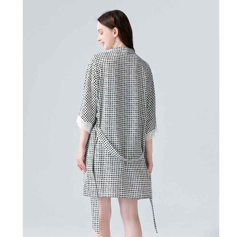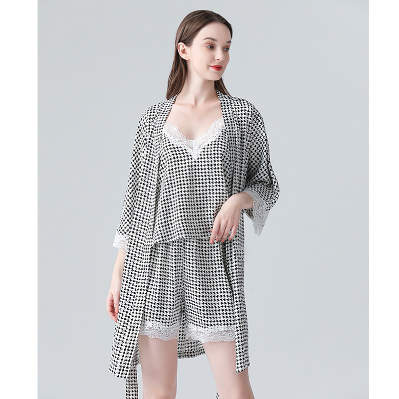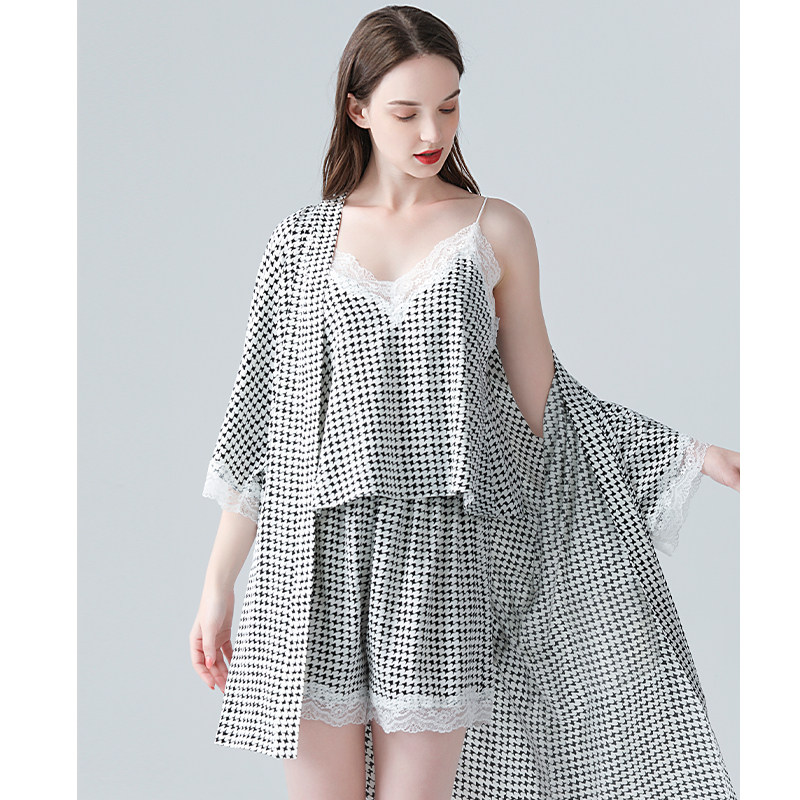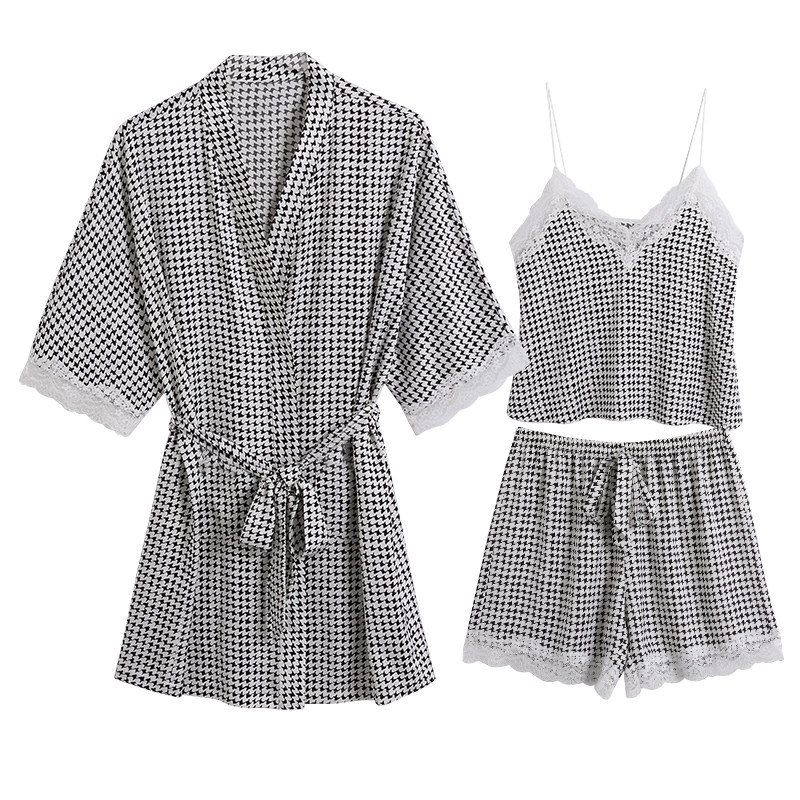 IIZZINI 2022 pajamas women's summer thin ice silk houndstooth suspender shorts sweet home clothes 3-piece suit