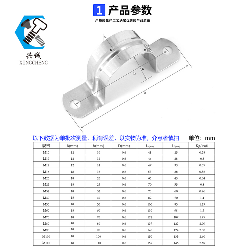 304 stainless steel pipe clamp pipe clamp riding card holder pipe holder pipe fastening throat hoop water pipe clamp U type pipe hoop hoop saddle