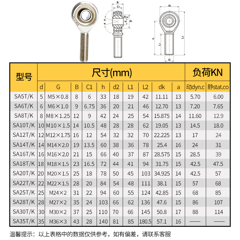 Imported joint bearing C-PHSO PHSOL5 6 8 10 12 14 16 18 20 22 fish eye head