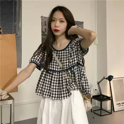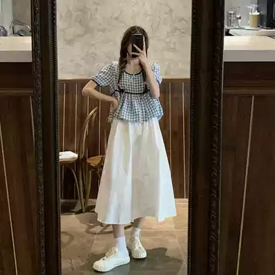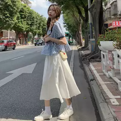 Student leisure suit women's spring and summer 2021 Korean version of the new plaid shirt high waist skirt Western style two-piece suit tide