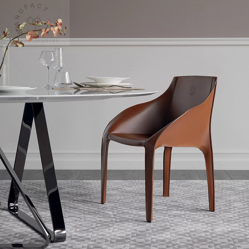 Designer saddle leather chair Nordic luxury leisure book chair sample house display center reception chair hotel negotiation chair home dining chair