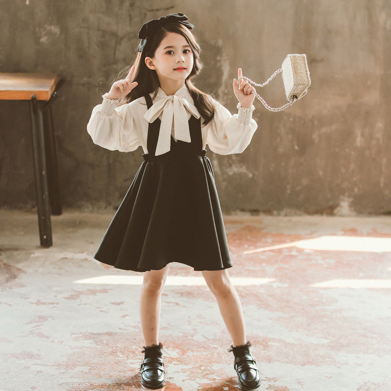 Girls' college style suit dress 2022 spring new Korean version of the children's princess skirt casual spring and autumn baby bag skirt