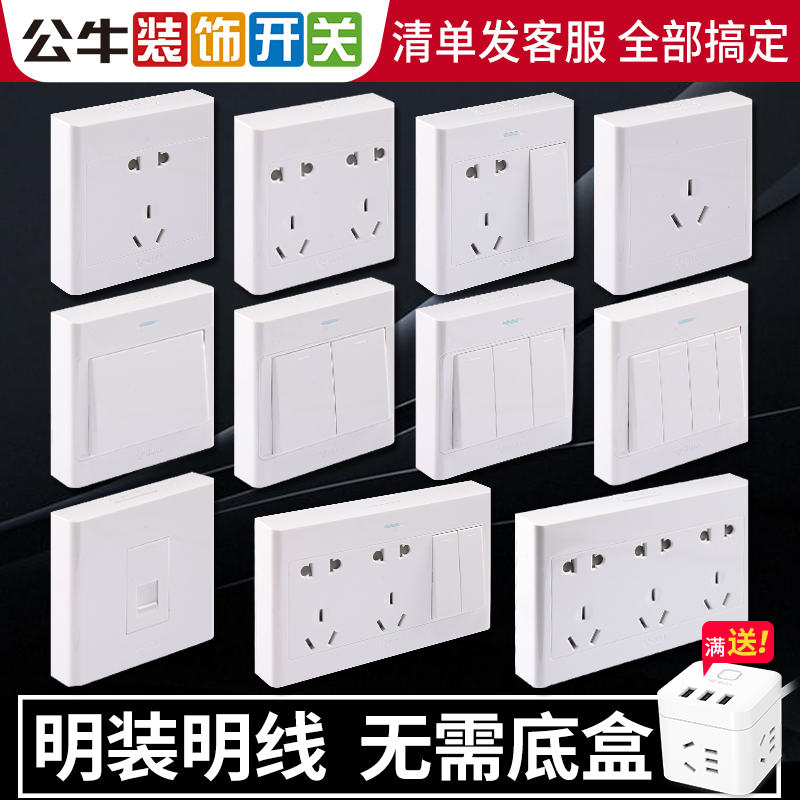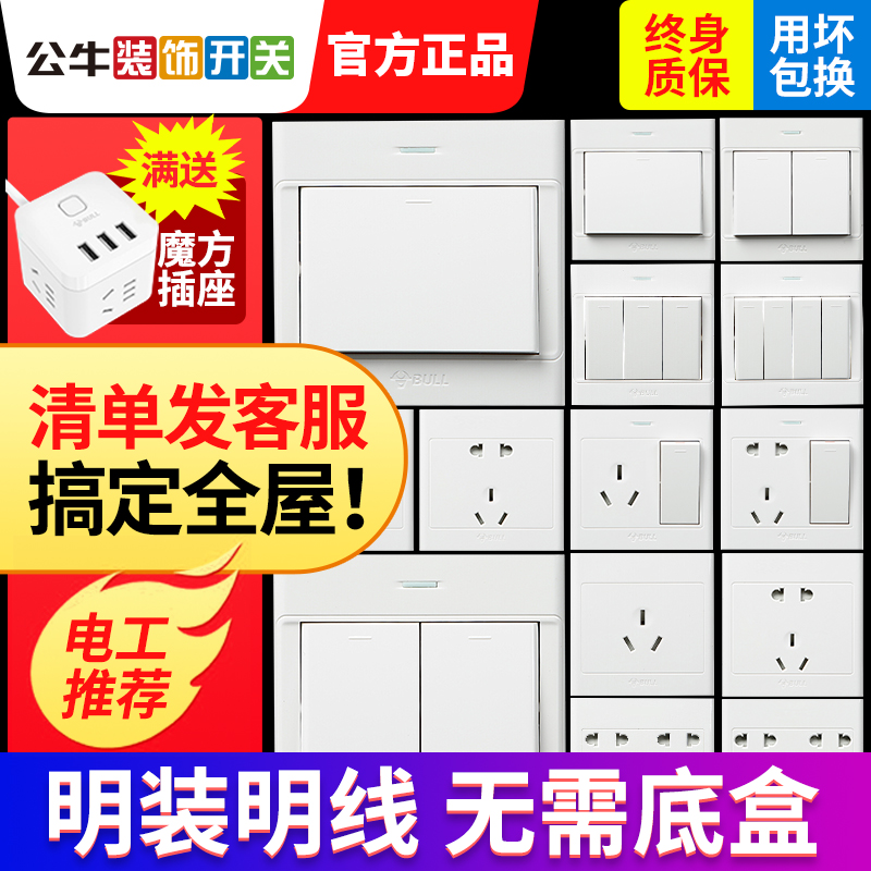 Bull switch panel button one open single open two open double three four open open installation single control electric lamp Ultra-thin household