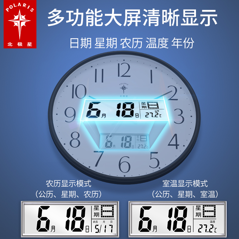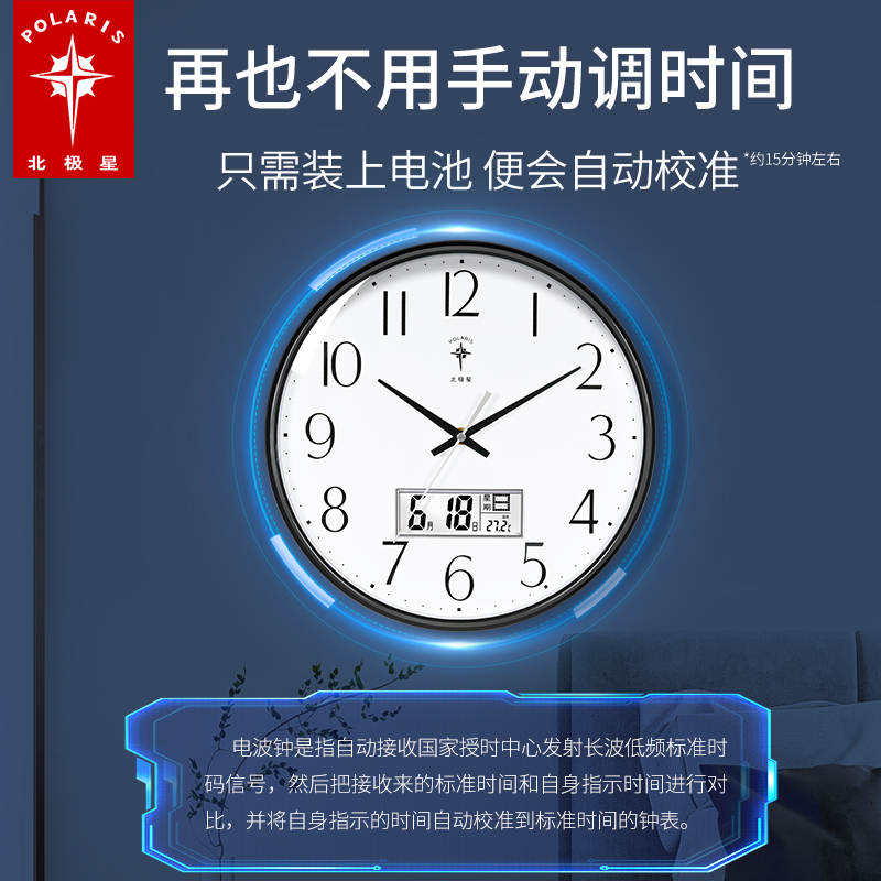 Polaris Home Living Room Atmospheric Creative Fashion Wall Clock Light Luxury Electronic Perpetual Calendar Mute Clock Radio Wave Clock