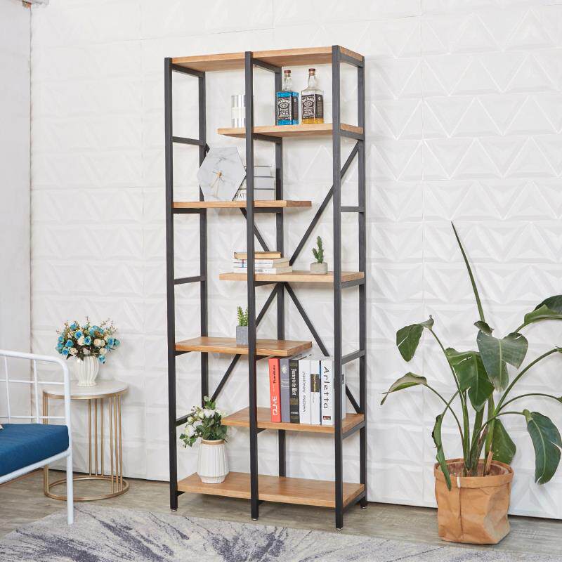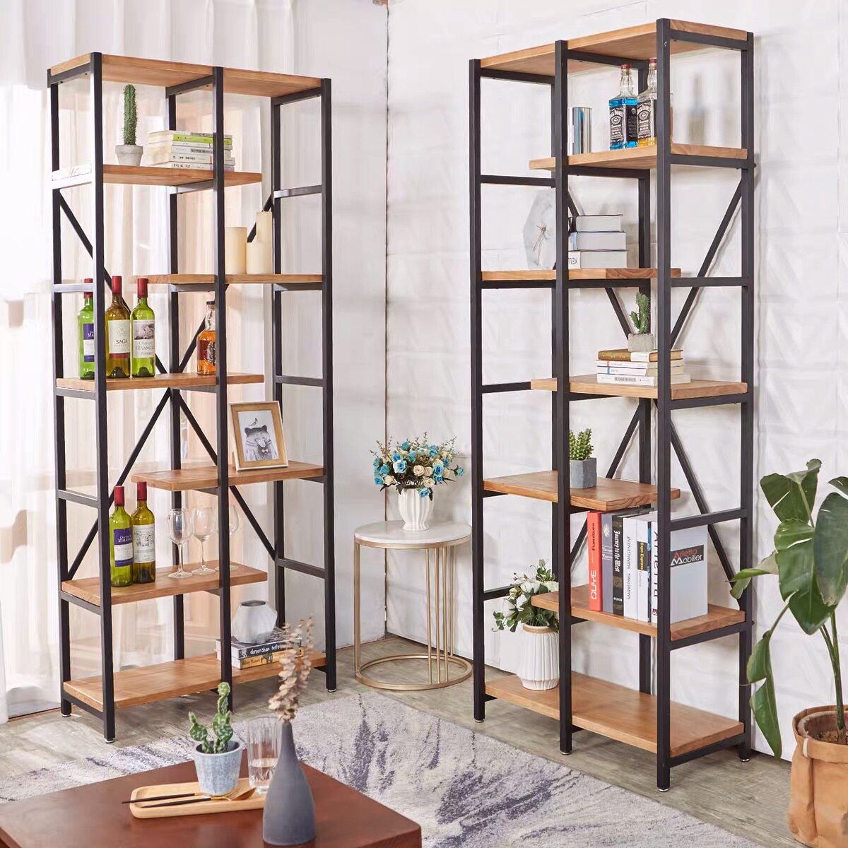 Nordic wrought iron bookshelf living room solid wood rack office display rack partition storage shelf floor display shelf