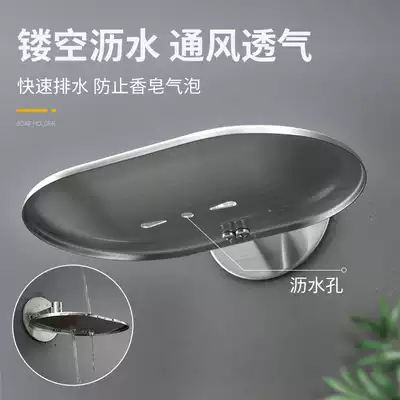Stainless steel fat soap box Adhesive wall-mounted powder room bathroom punch-free fat soap rack creative drain incense box