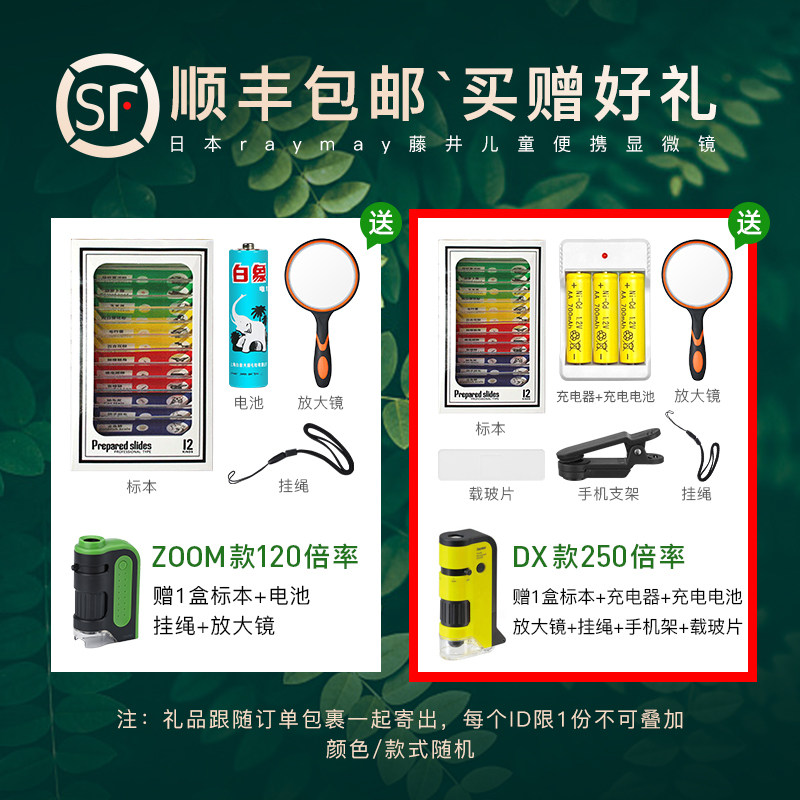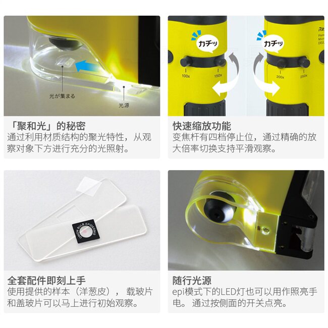 Japan Raymae Fujii Microscopy Children Science Portable Microscope Handheld Microscopy Students Science Observation Exploring Magnifying Glass 20 Times 250 250 Times LED Lamp Falling Transmission lighting