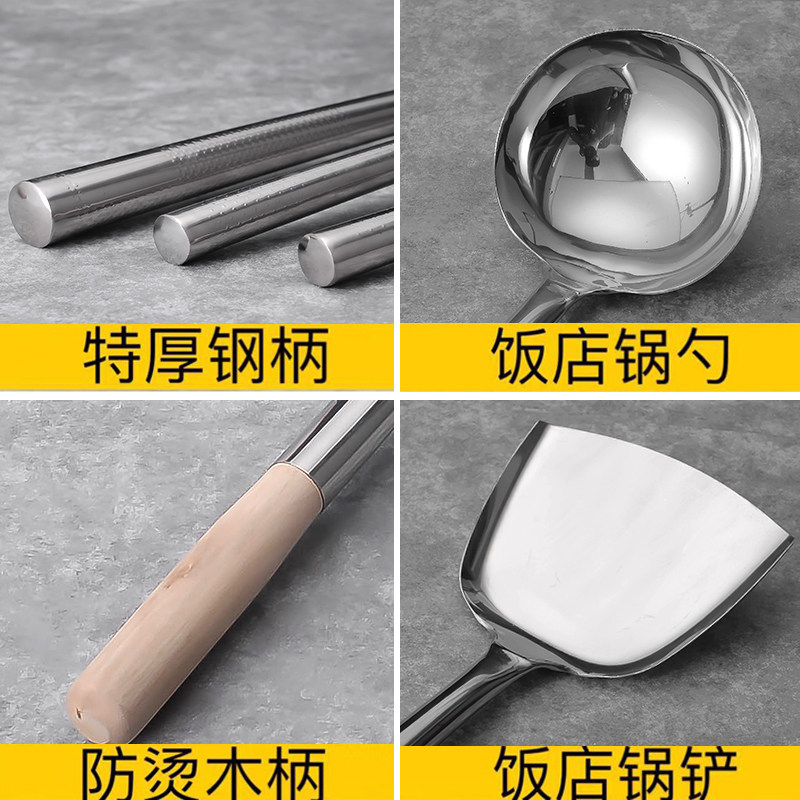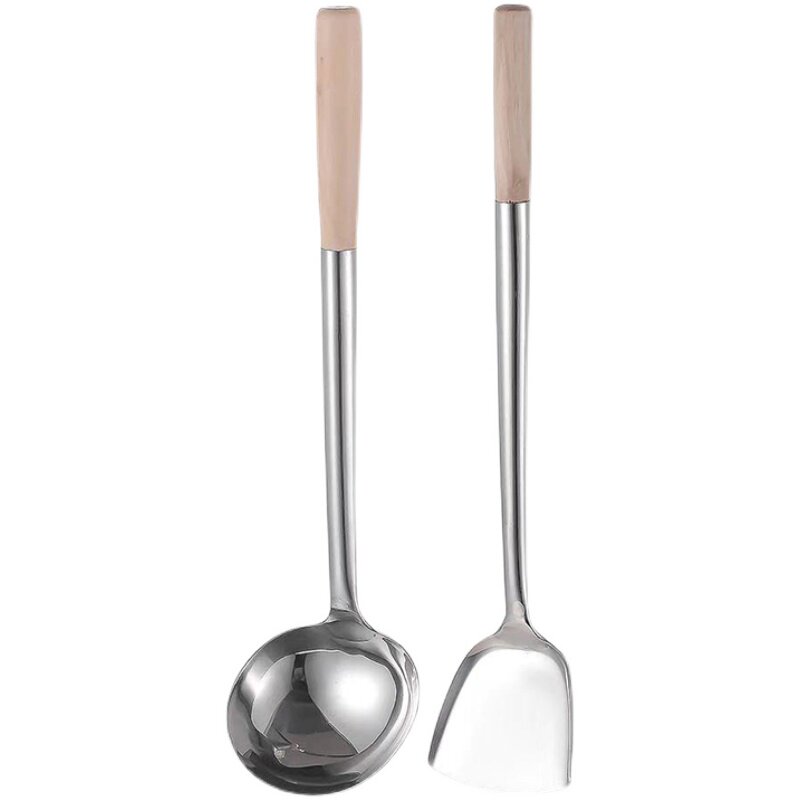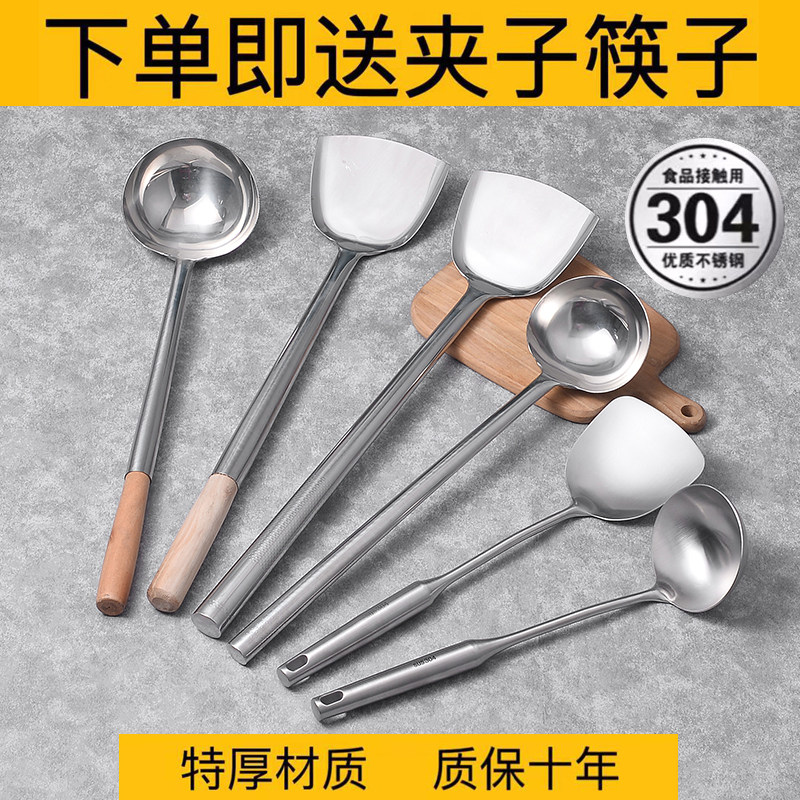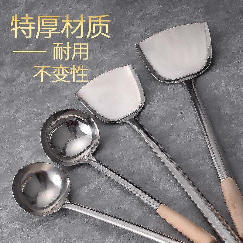 304 stainless steel frying spoon chef frying spoon long handle soup spoon dish spoon shovel kitchen pot spoon porridge spoon wooden handle spoon