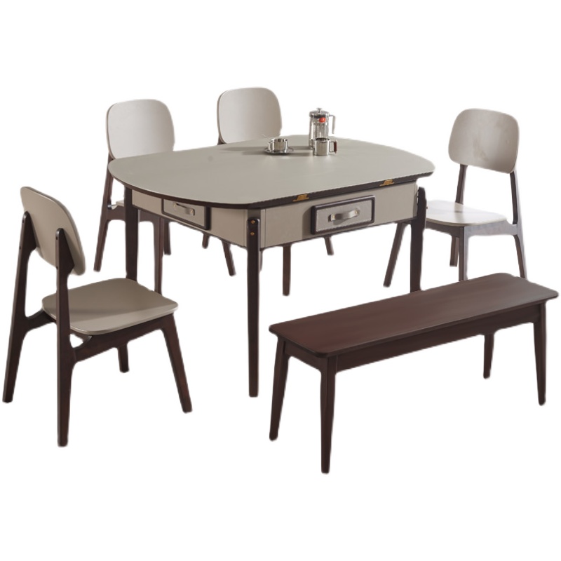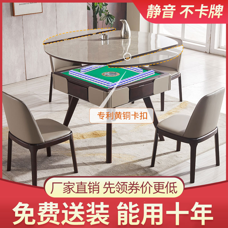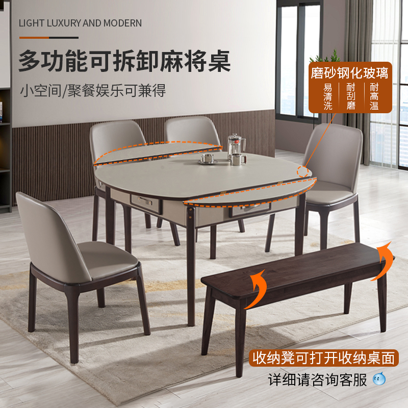 Modern simple solid wood mahjong machine fully automatic mahjong table dining table dual use folding home Nordic round dining table integrated