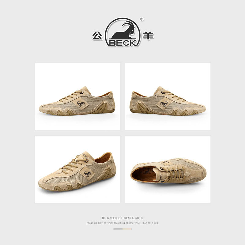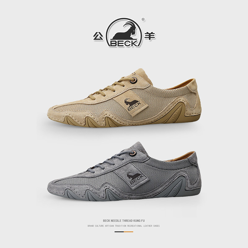 Ram men's shoes 2022 new autumn breathable mesh men's casual leather shoes leather all-match shoes men's trendy shoes