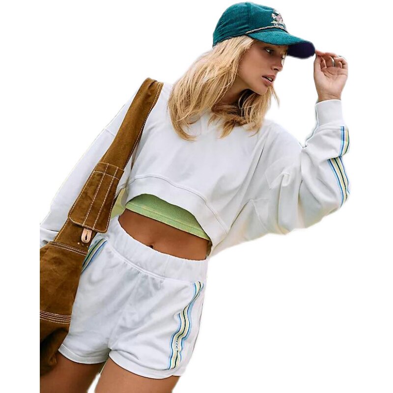 USA Free People Cool Colorful Ribbon V-neck Silhouette Hooded Sweatshirt Shorts Sports Suit