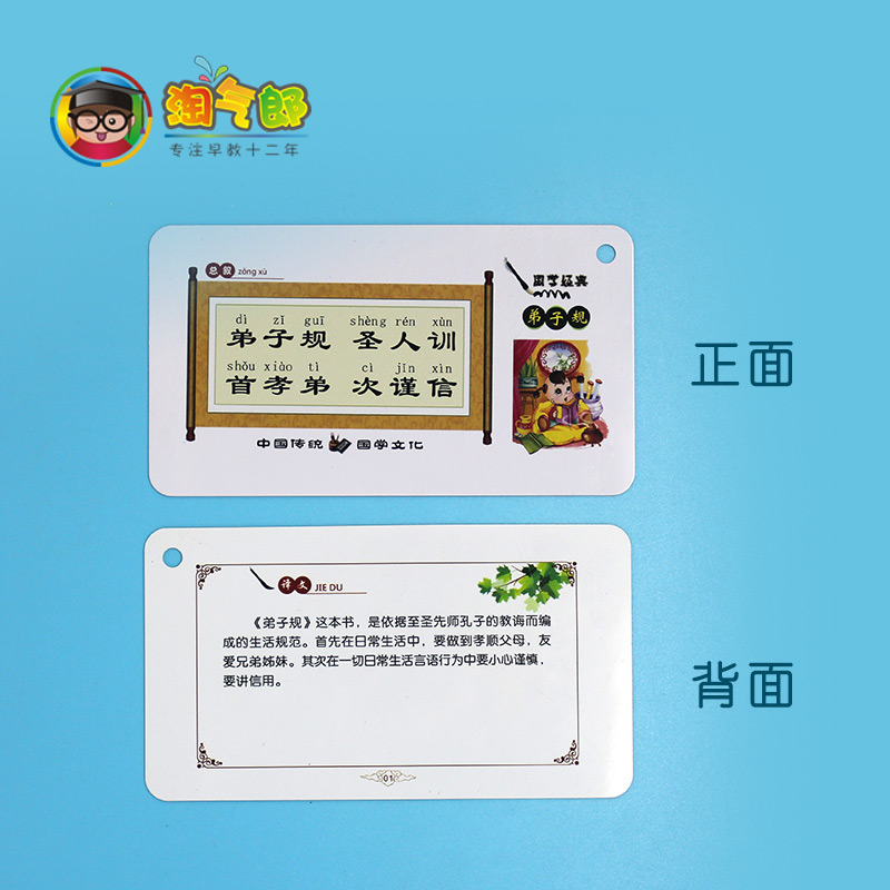 Naughty Lang Chinese School classic children's Zhuyin version disciple rule 0-3-6-8-year-old baby early education literacy card