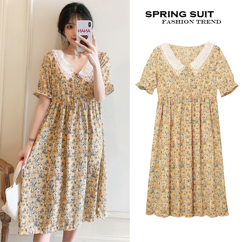 Gestational Maternity dress 2021 Spring summer large size Snow spinning skirt Pregnancy Fashion style Summer Short Sleeve Turnover of Blossom Skirt