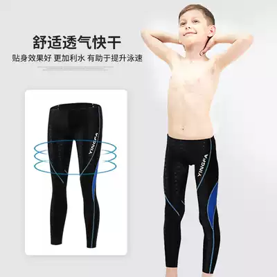 Yingfa children's men's nine-point long-legged shark skin swimming trunks anti-cold insulation quick-drying low-waist professional sports swimsuit