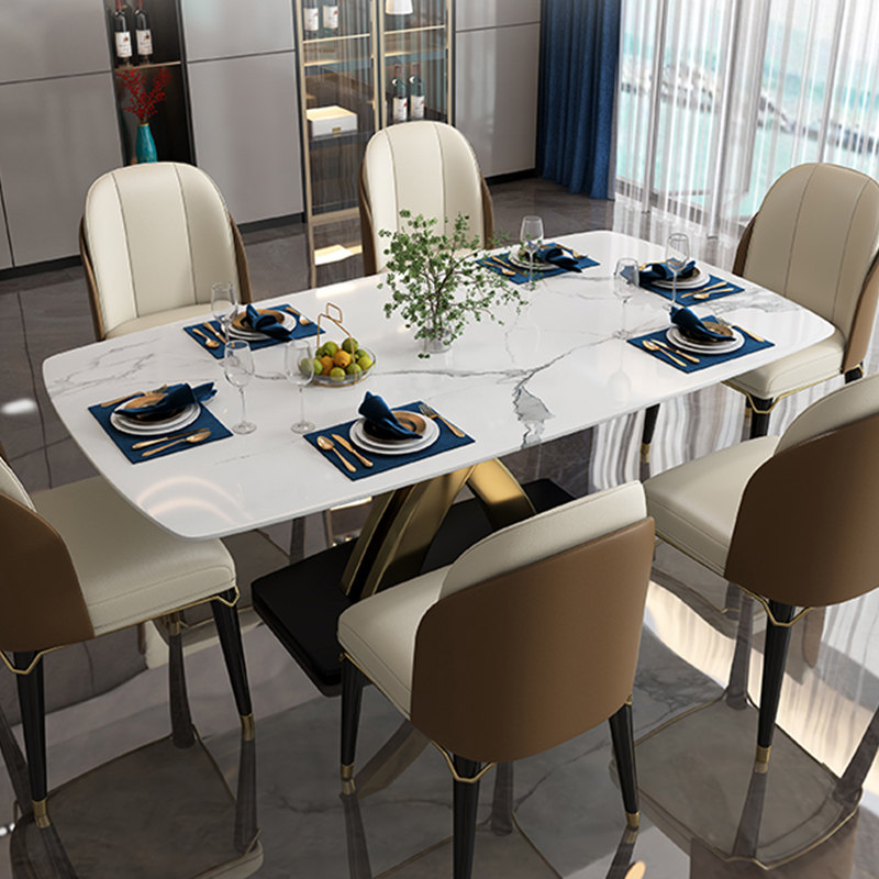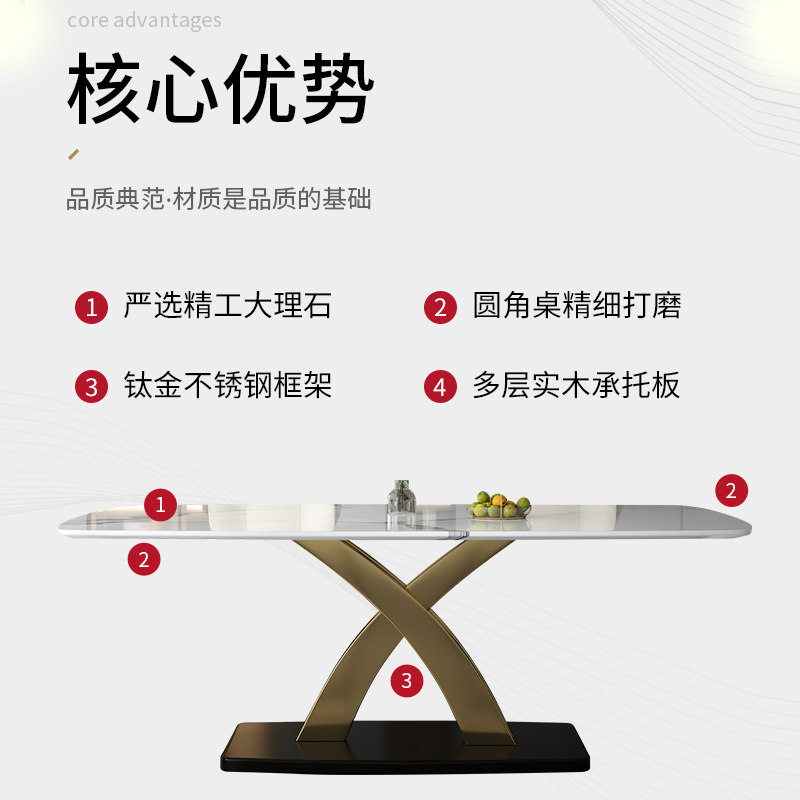 Italian marble dining table and chair combination rectangular Nordic minimalist modern dining table light luxury stainless steel furniture