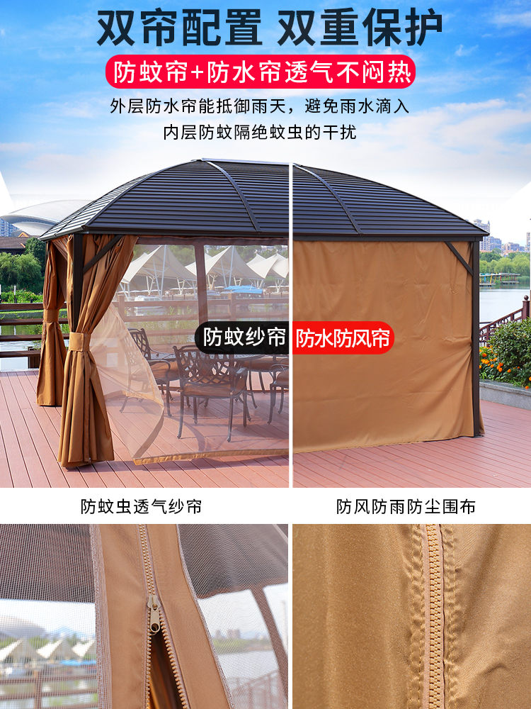 Gazebo outdoor courtyard garden pavilion anti-corrosion wood aluminum alloy outdoor yard awning mobile four-corner tent