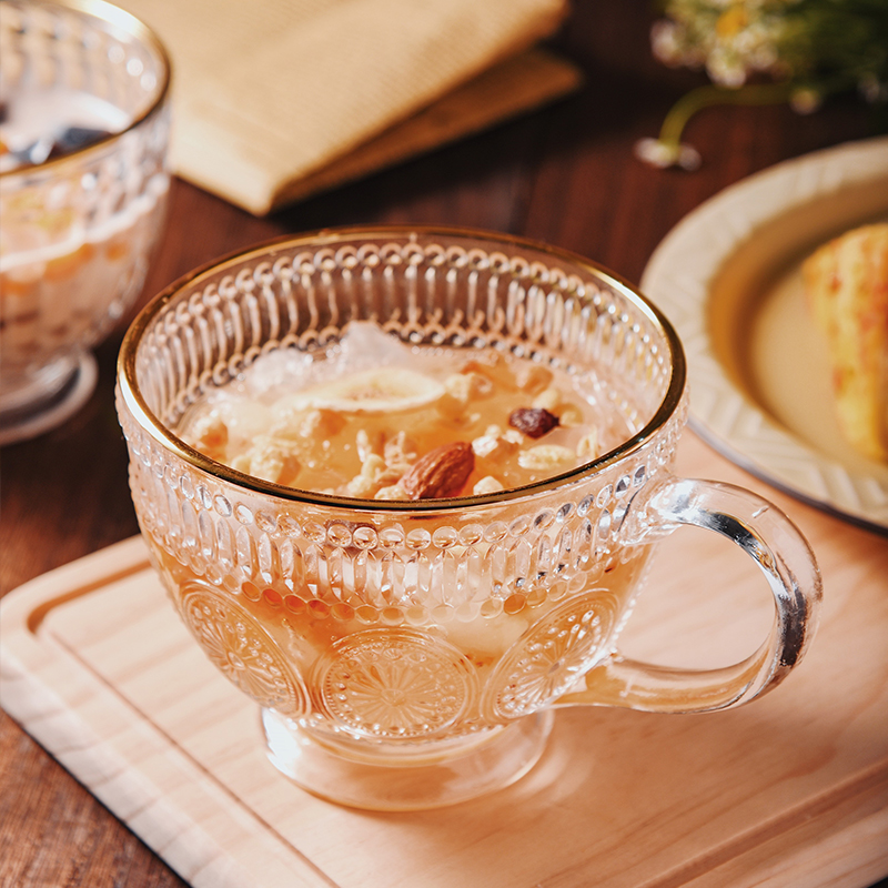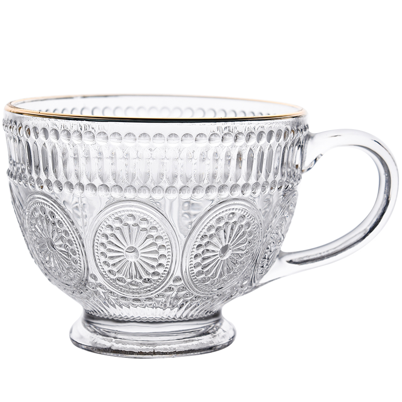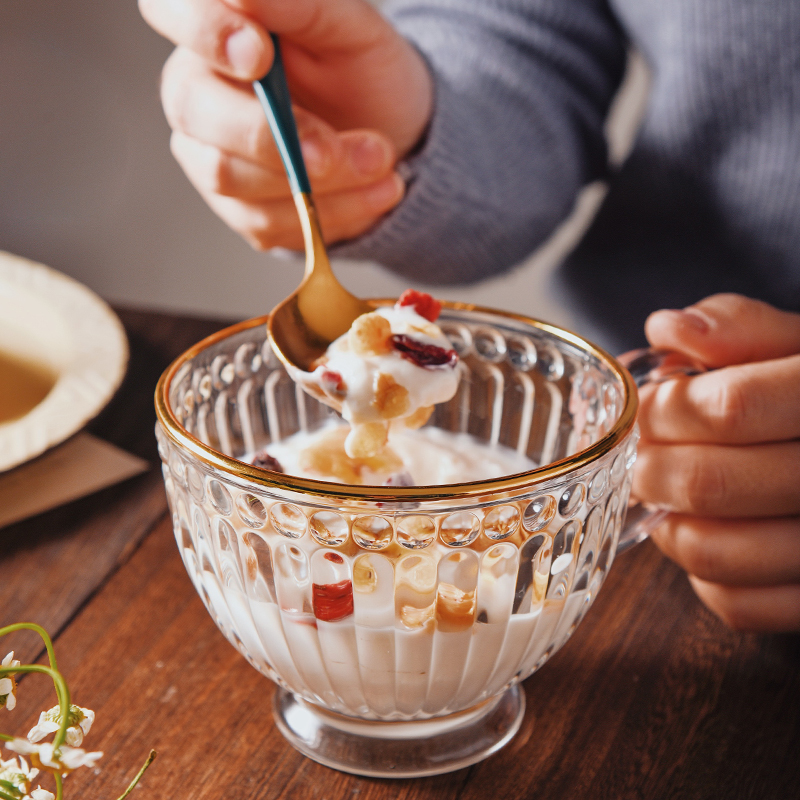 Phnom Penh Pearl spot cup green handle gold round head spoon cover transparent sunflower cup green handle gold head spoon Phnom Penh sunflower cup green handle gold round head spoon cover transparent Pearl spot cup green handle gold round head
