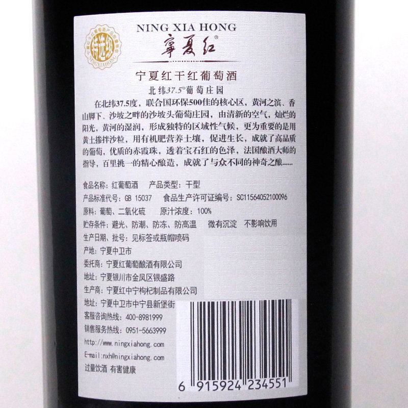 Ningxia red wine 13° Ningxia Holan Shan East Lu Lu red wine red wine dry wine cabernetic sauce