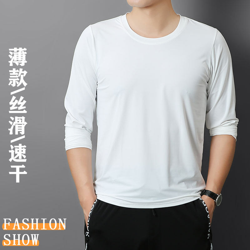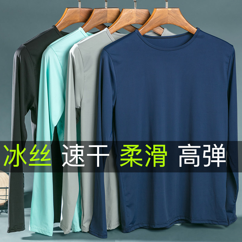 Ice silk long-sleeved T-shirt men's bottoming shirt loose quick-drying modal summer thin round neck quick-drying top sports