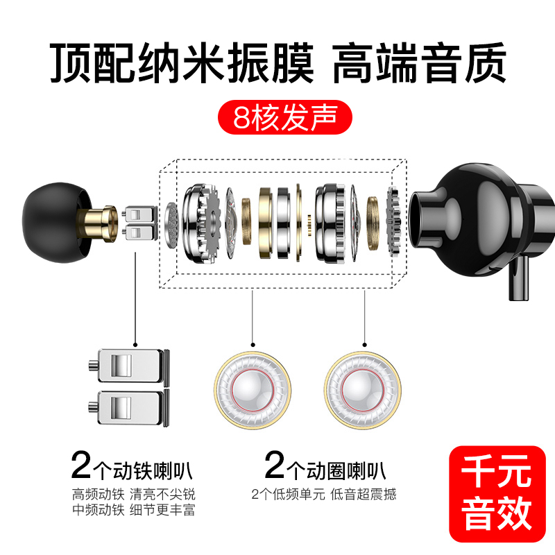 Headphone wired high sound quality is suitable for vivo Huawei oppo millet Apple mobile phone round hole typeec in-ear 3 5mm computer subbass National K song special eating chicken with wheat General
