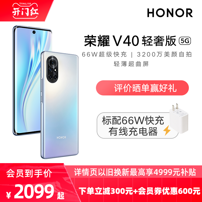 (Order to enjoy 12 issues interest-free) HONOR glory V40 light luxury version 5G mobile phone light and thin super curved screen 66W super fast charge Beauty photo selfie new curved screen official