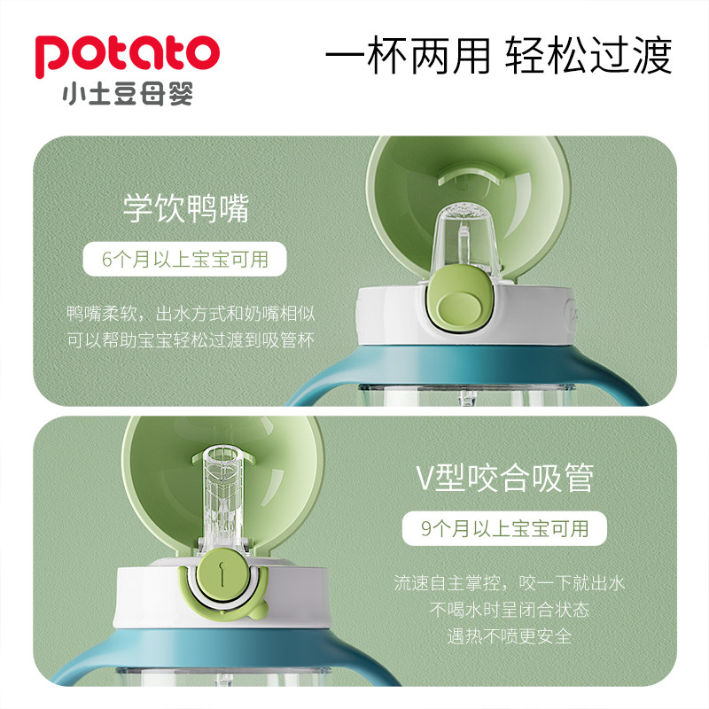 Small Potatoes Children's Water Glass Large Capacity Kindergarten Elementary School Students Anti-Fall Baby Drink Straw Scale Milk Cup Duckbill