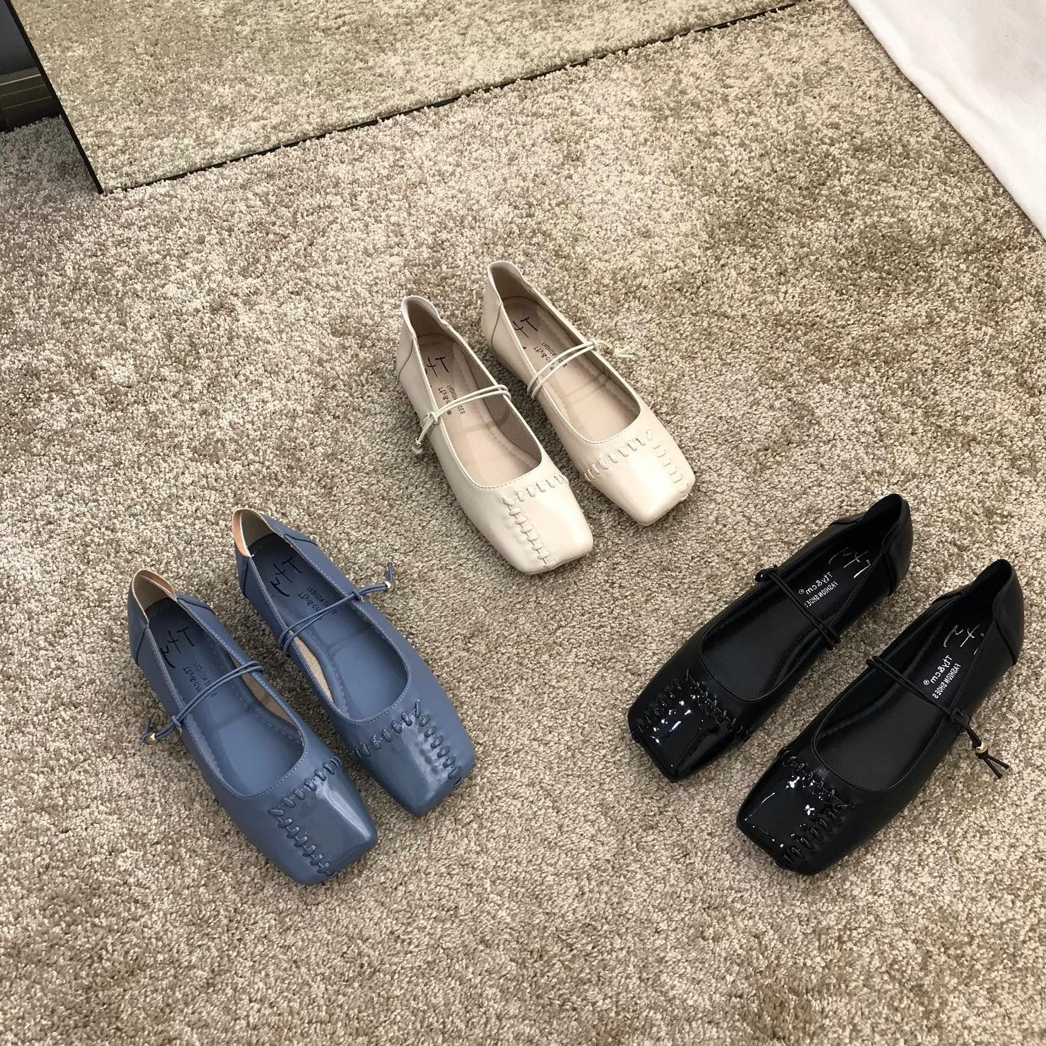 ITSK Boots Woman Single Shoe Square Head Light word with low heel Marie Precious female shoes Bean Bean Shoes