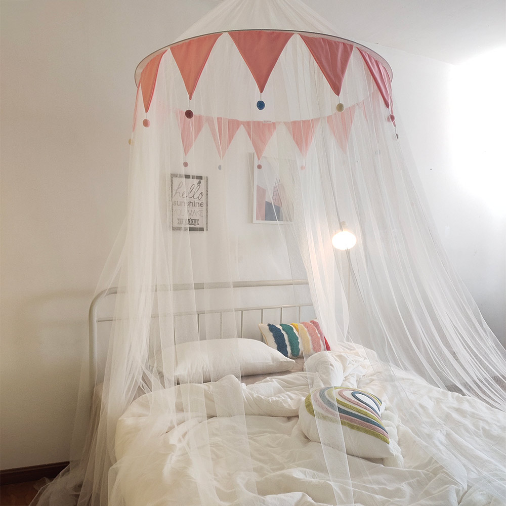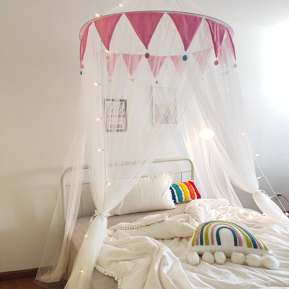 Dome suspended ceiling three-door mosquito net princess home universal free installation bed mantle Nordic minimalist hair ball girl no stitching