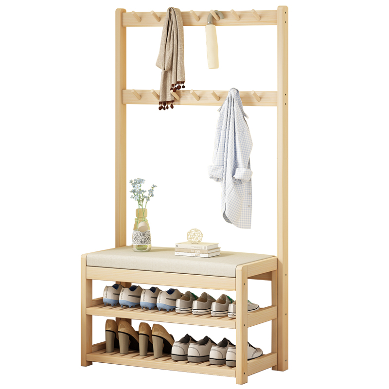 Hanging hanger floor-to-ceiling indoor solid wood living room changing shoes stool integrated entrance door entry hanging clothes living room coat rack