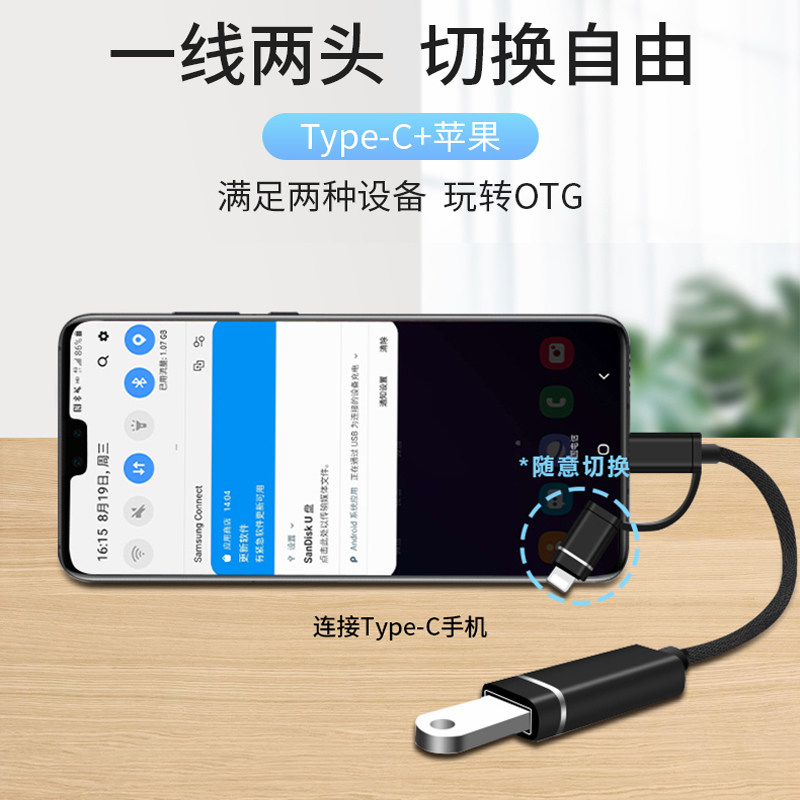 OTG data cable adapter android type-c to usb to mouse U disk download mp3 universal apple computer oppo Huawei tablet otg converter millet vivo mobile phone connection