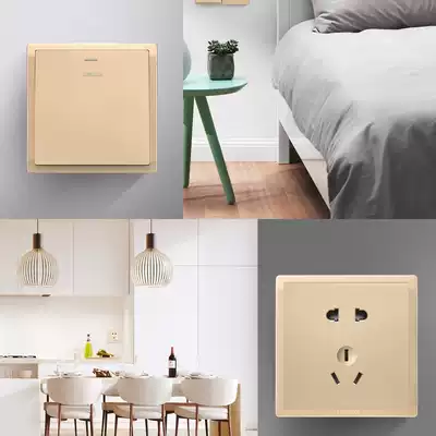 Delixi official store switch socket panel household concealed 86 type wall open with five holes Champagne gold
