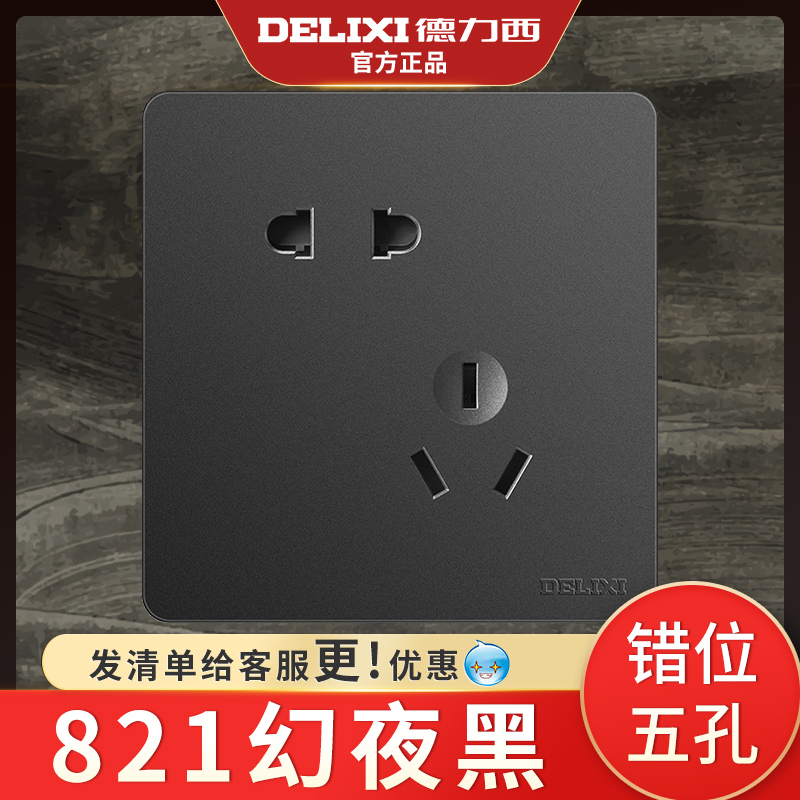 Delixi inclined five-hole 86 type power supply concealed wall wall switch socket 23 skewer five-eye panel black gray