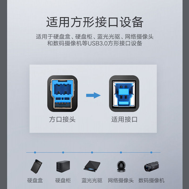 High-speed type B printing square port HD camera acquisition card mobile hard disk box USB3 0 data cable