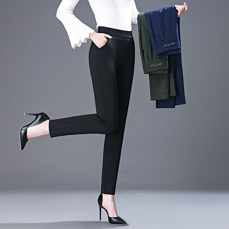 Black inner pants women wear spring and Autumn new mom middle-aged fat mm large size high waist elastic tight women's pants