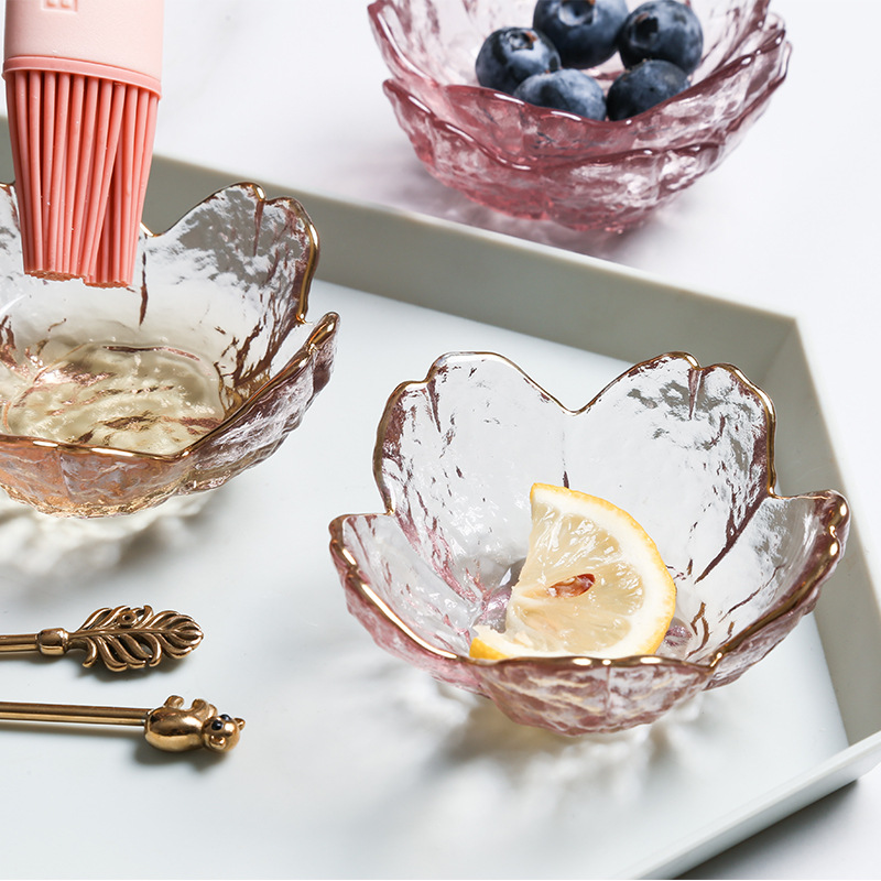 Europeans Japanese-style glass cherry dish creative pink petal disc household dip disc glass tableware flavor dish
