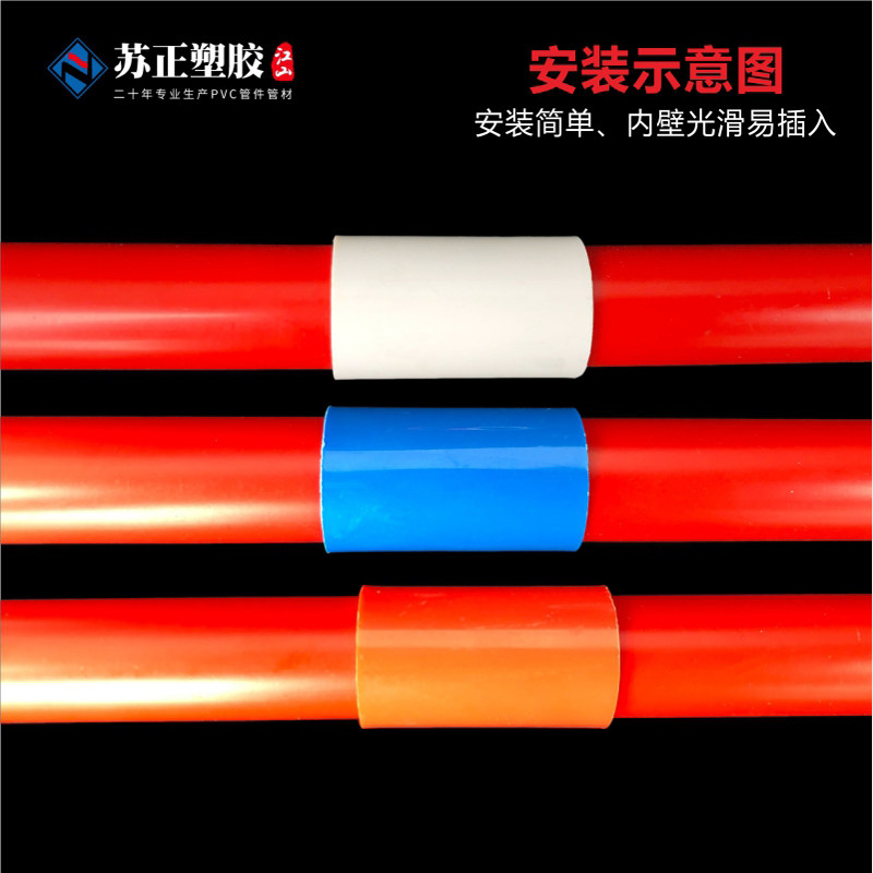 PVC plastic electrician threading pipe direct 16 20 line pipe joint lengthened and thickened red, blue and white 4 points national standard