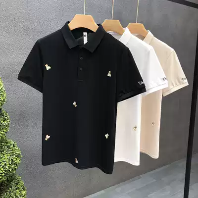 Bear embroidery handsome lapel high-end Polo shirt men's trend brand summer collared t-shirt men's popular short-sleeved