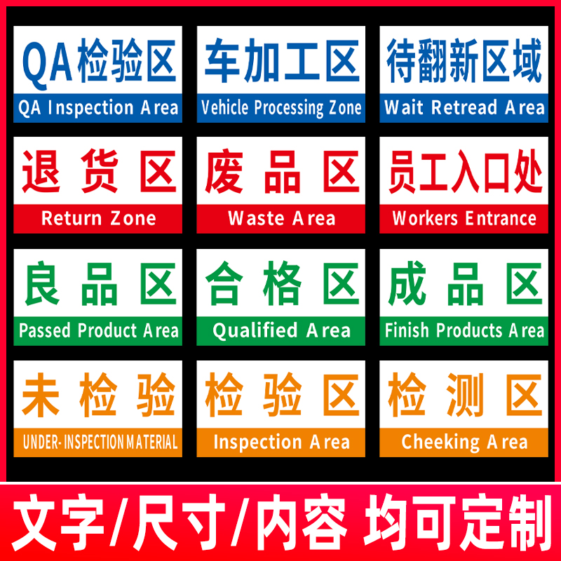 Please replace the shoe cover warehouse identification card, the brand, the factory area, the material preparation area, the shipping turnover area, the notice card