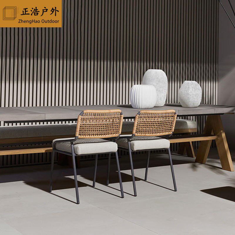 Single chair (2.0 aluminum tube + imported PE rattan + 45 density cotton) leather luxury edition